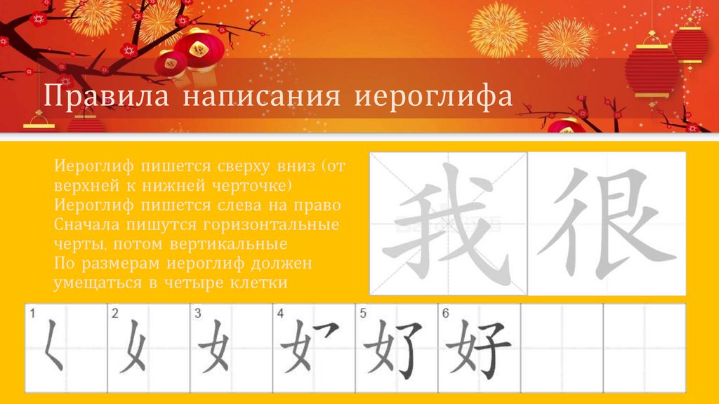 Правила написания иероглифаИероглиф пишется сверху вниз (от