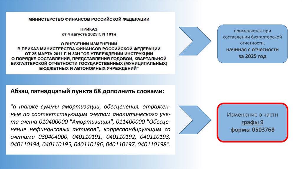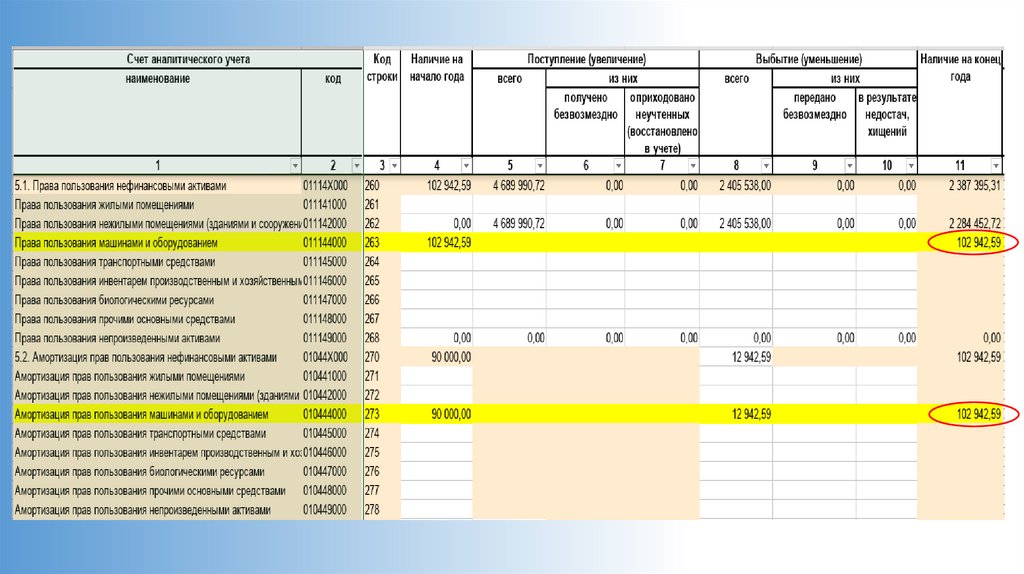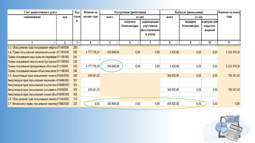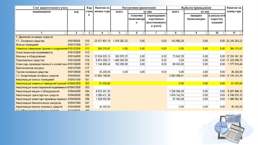 "а также суммы амортизации, обесценения, отраженные по соответствующим счетам аналитического учета счета 010400000 "Амортизация", 011400000 "Обесценение нефинансовых активов", корреспондирующим со