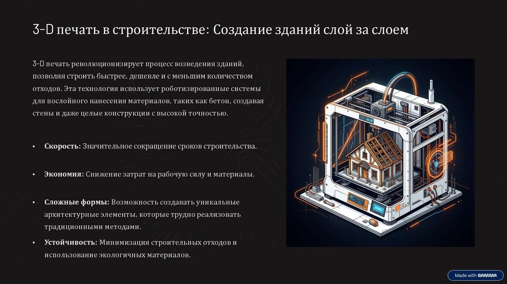 3-D печать в строительстве: Создание зданий слой за слоем3-D печать революционизирует процесс возведения зданий,
