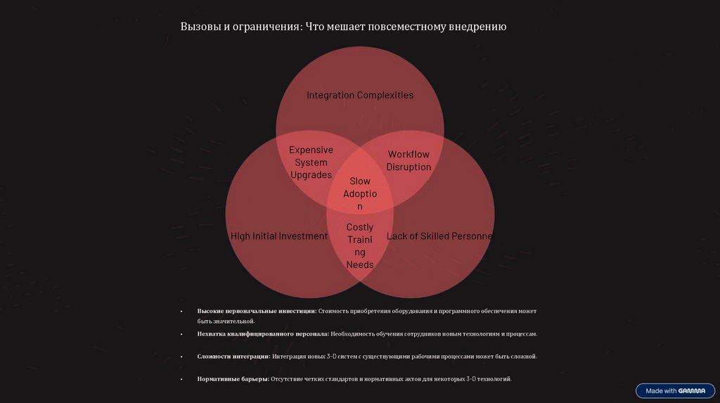 Сложности интеграции: Интеграция новых 3-D систем с существующими рабочими процессами может быть сложной.