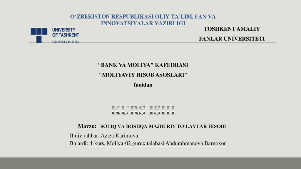 Mavzu: SОLIQ VА BОSHQА MАJBURIY TO’LАVLАR HISОBI