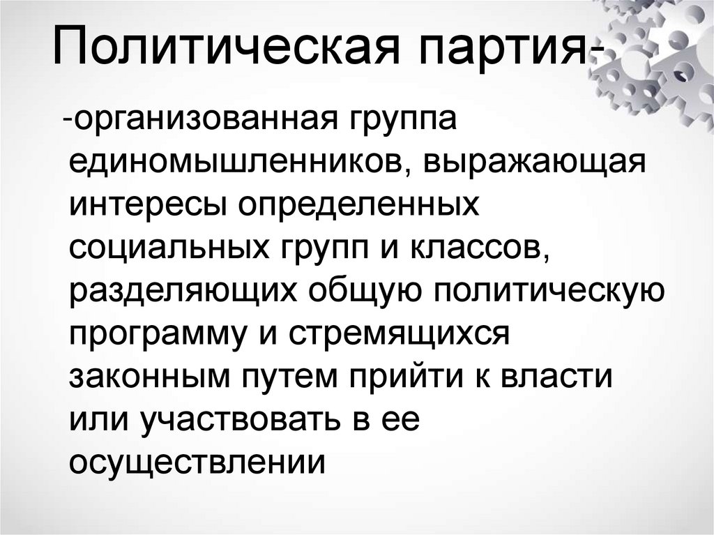 Политическая партия-организованная группаединомышленников, выражающая