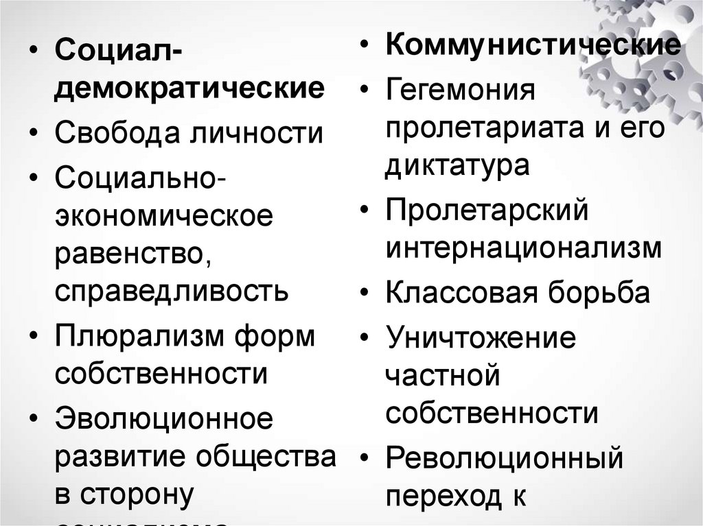 • Коммунистические• Социалдемократические • Гегемония