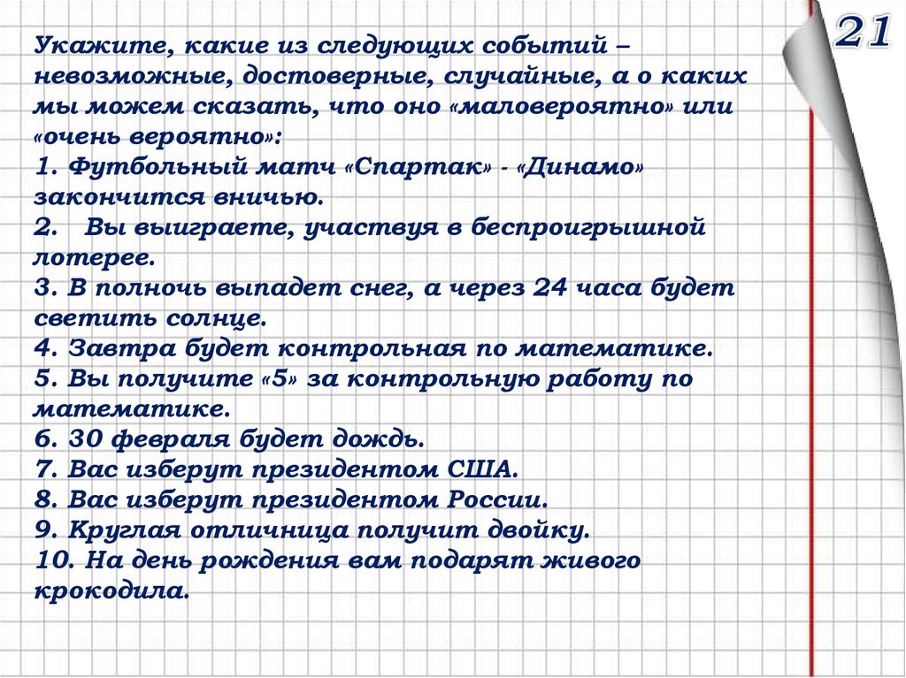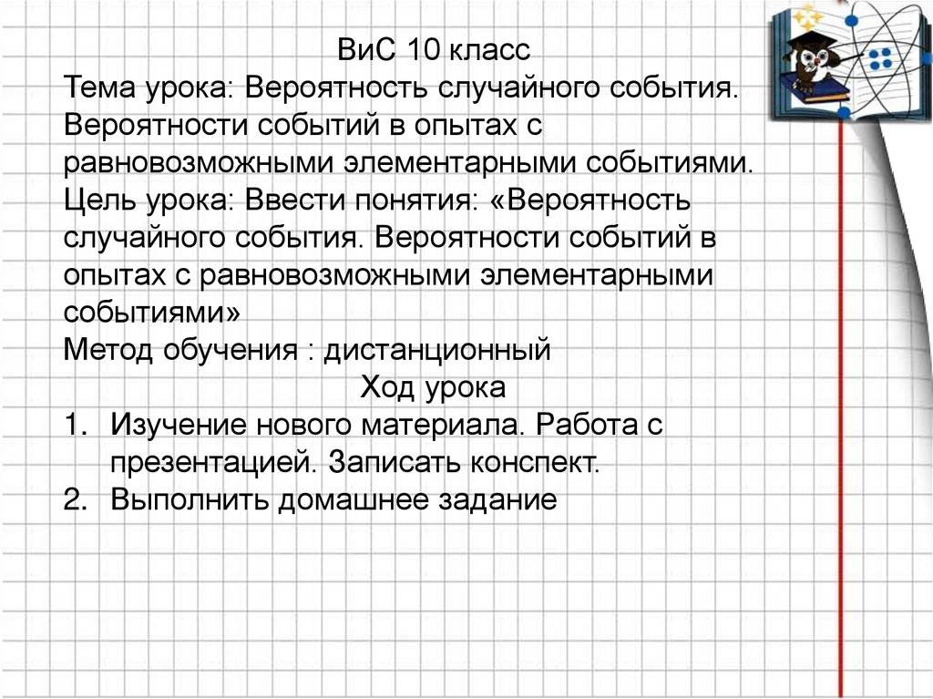 28.01.26 10 класс Вероятность случайного события. Вероятности событий в опытах с равновозможными элементарными событиями