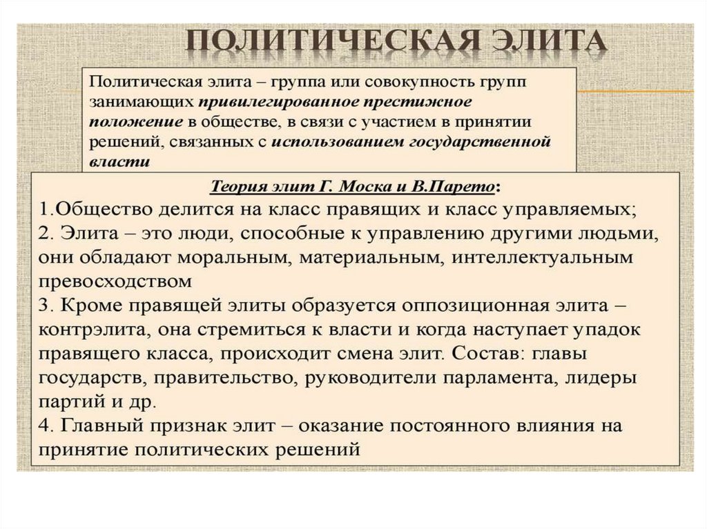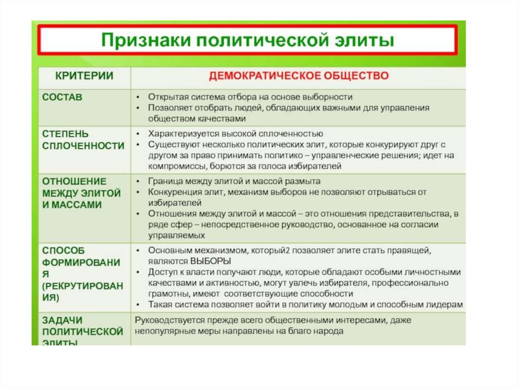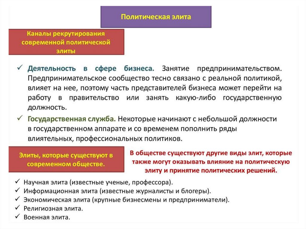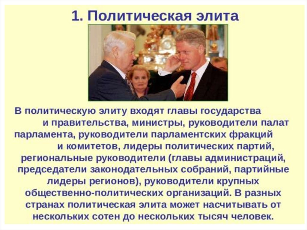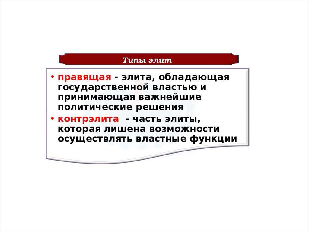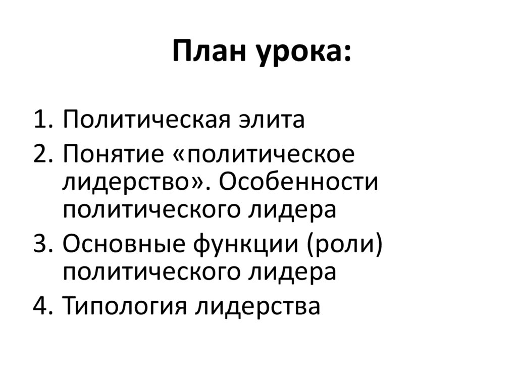 План урока:1. Политическая элита