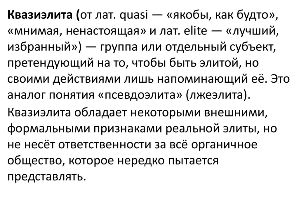 Квазиэлита (от лат. quasi — «якобы, как будто»,«мнимая, ненастоящая» и лат. elite — «лучший,