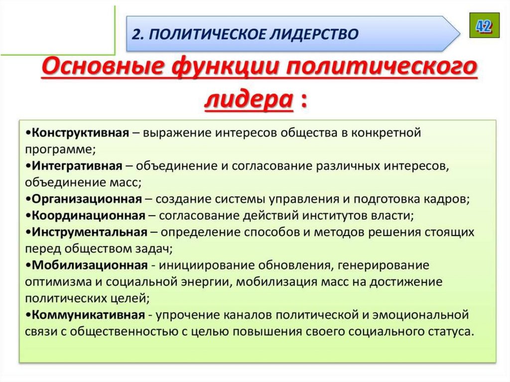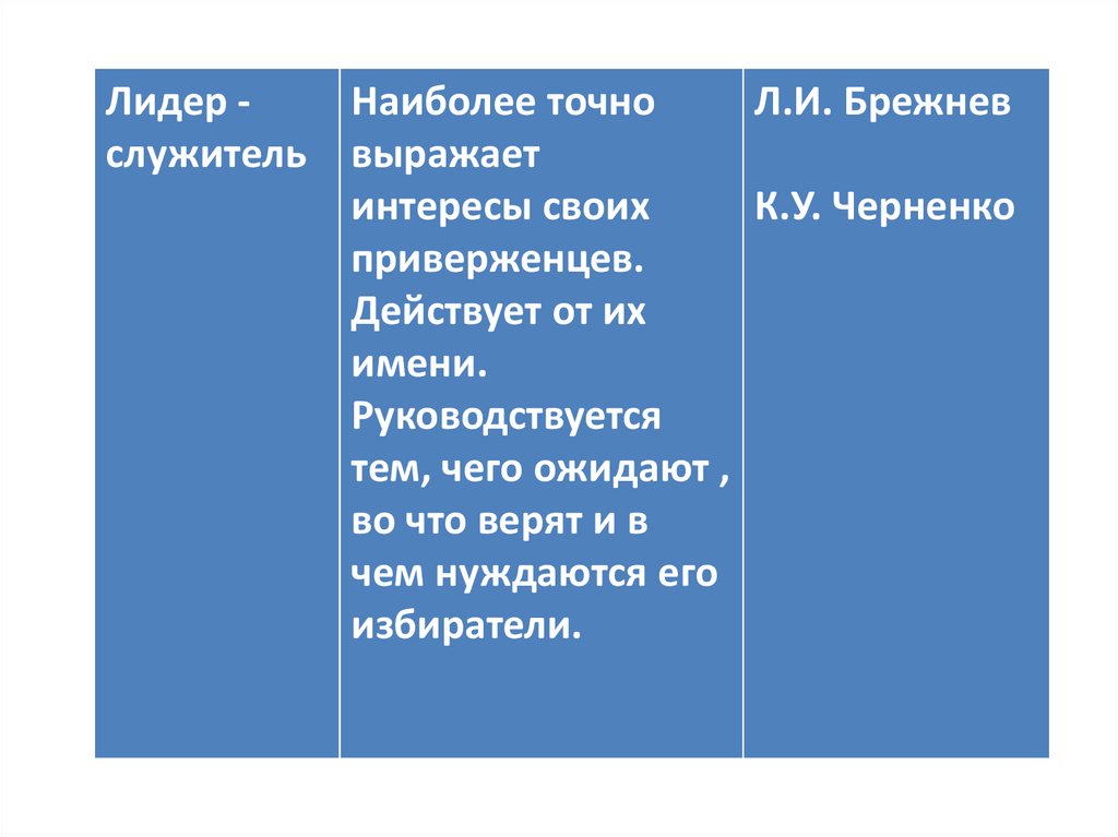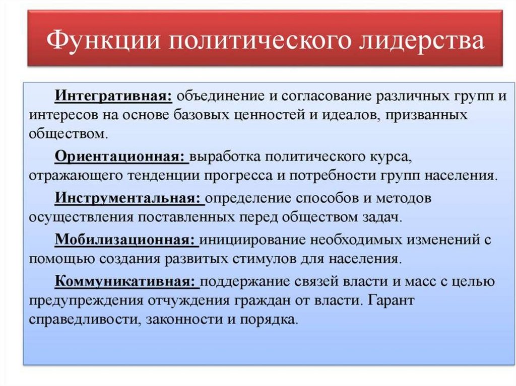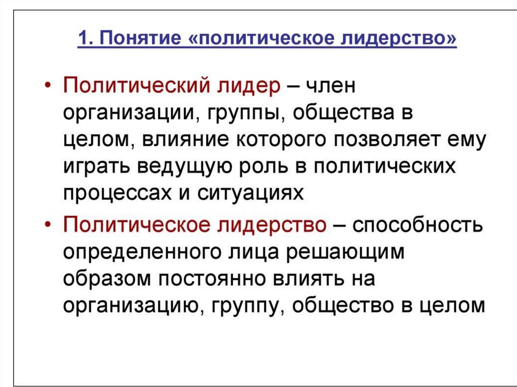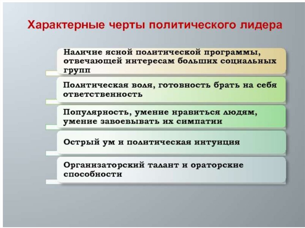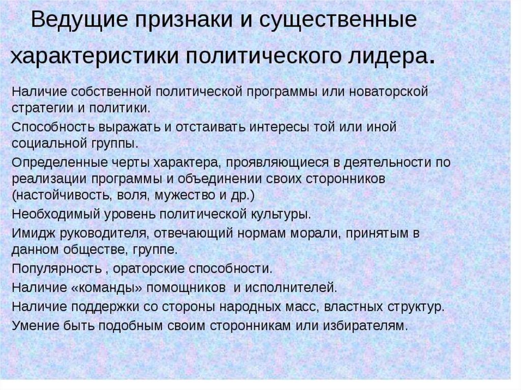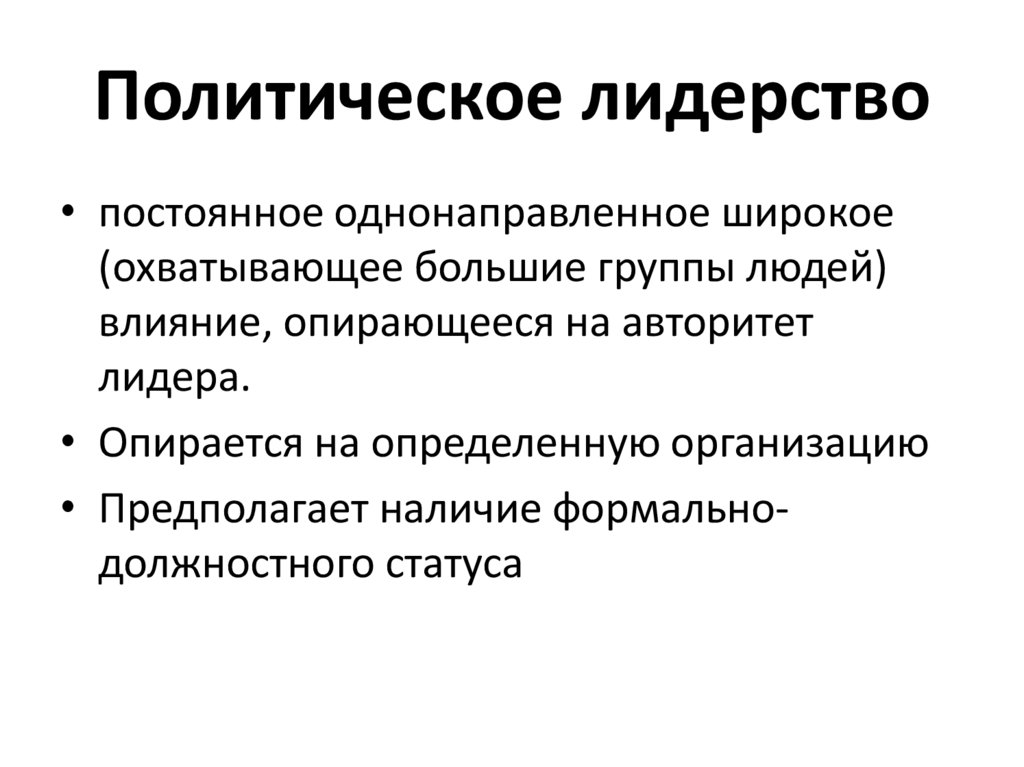 Политическое лидерство• постоянное однонаправленное широкое
