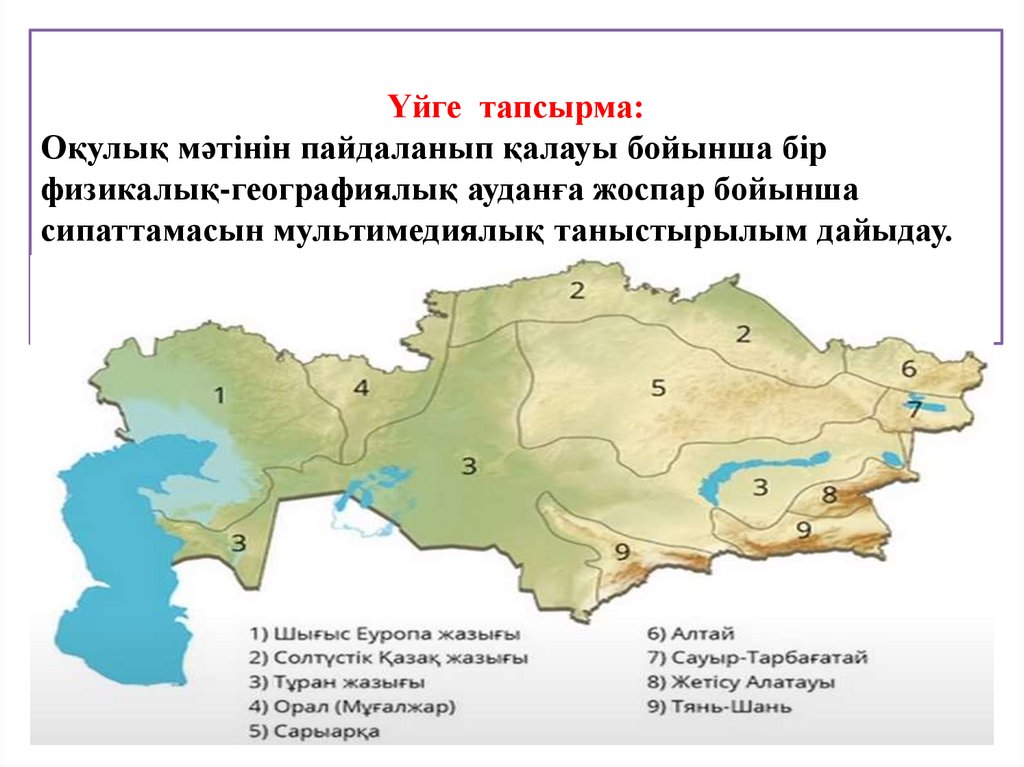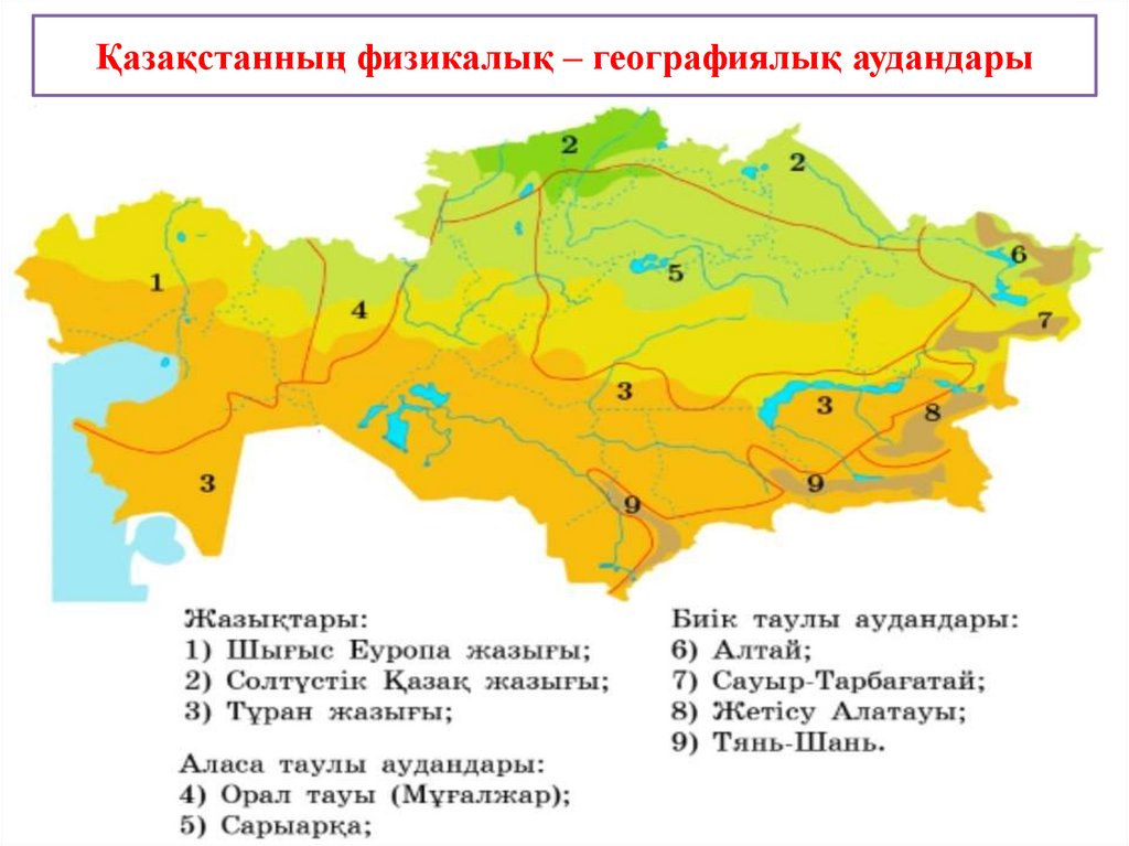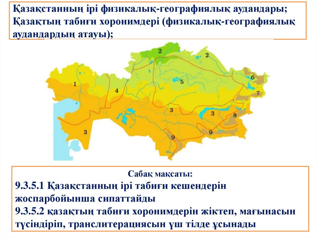 Қазақстанның ірі физикалық-географиялық аудандары;Қазақтың табиғи хоронимдері (физикалық-географиялық
