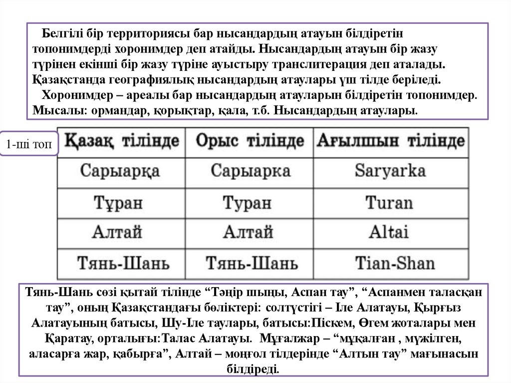 9.3.5.2 қазақтың табиғи хоронимдерін жіктеп, мағынасын