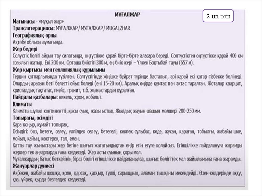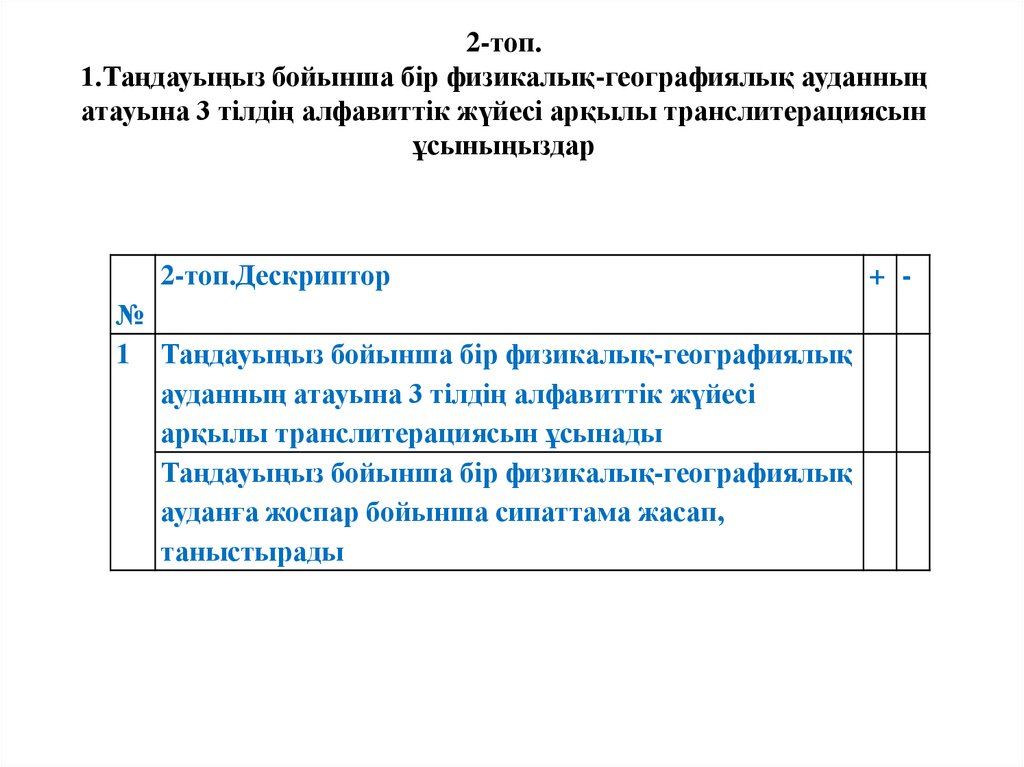 2-топ.1.Таңдауыңыз бойынша бір физикалық-географиялық ауданның