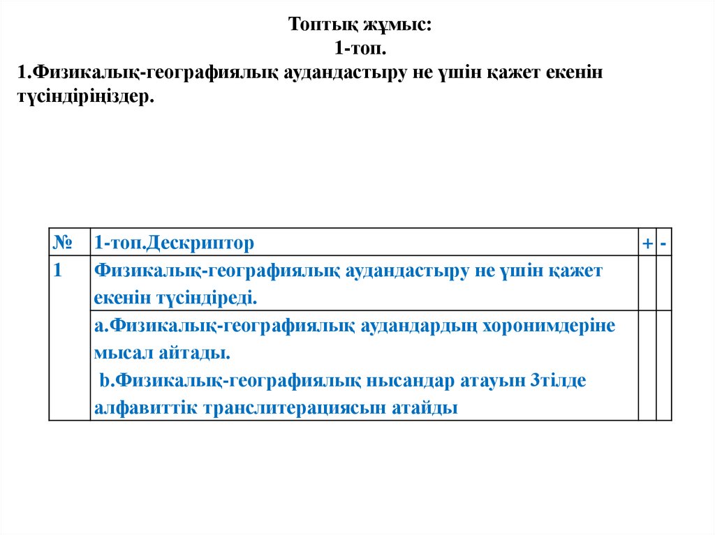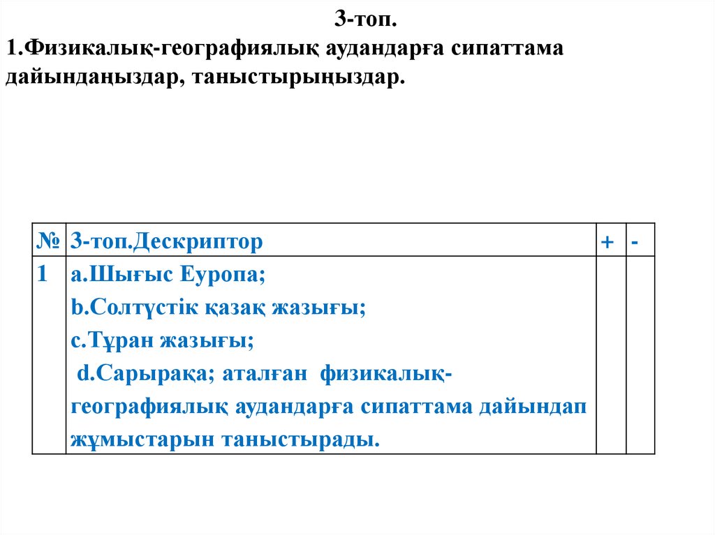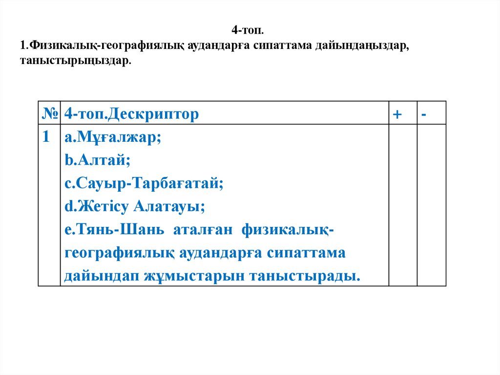 4-топ.1.Физикалық-географиялық аудандарға сипаттама дайындаңыздар,