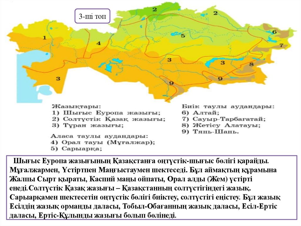 3-ші топШығыс Еуропа жазығының Қазақстанға оңтүстік-шығыс бөлігі қарайды.