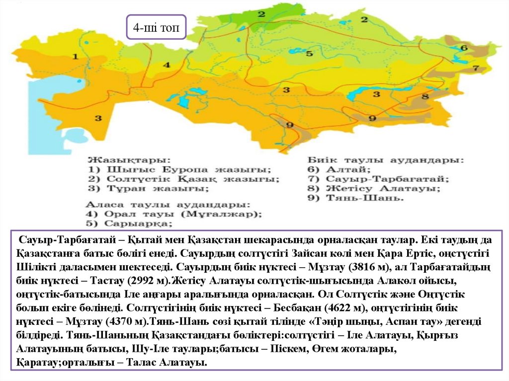 4-ші топСауыр-Тарбағатай – Қытай мен Қазақстан шекарасында орналасқан таулар. Екі таудың да