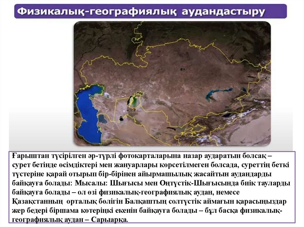 байқауға болады – ол өзі физикалық-географиялық аудан, немесе