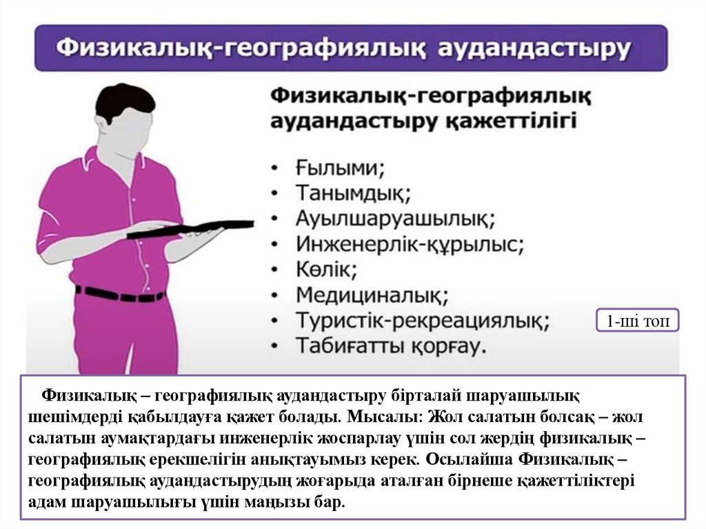 1-ші топФизикалық – географиялық аудандастыру бірталай шаруашылық