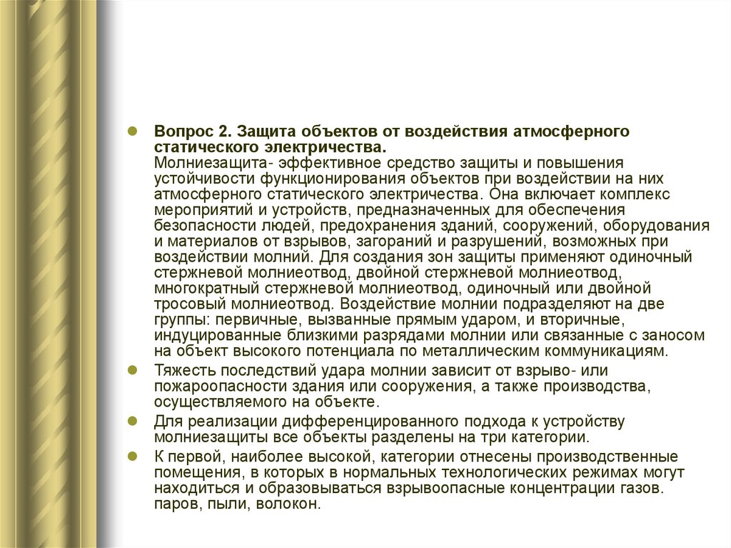 Вопрос 2. Защита объектов от воздействия атмосферногостатического электричества.