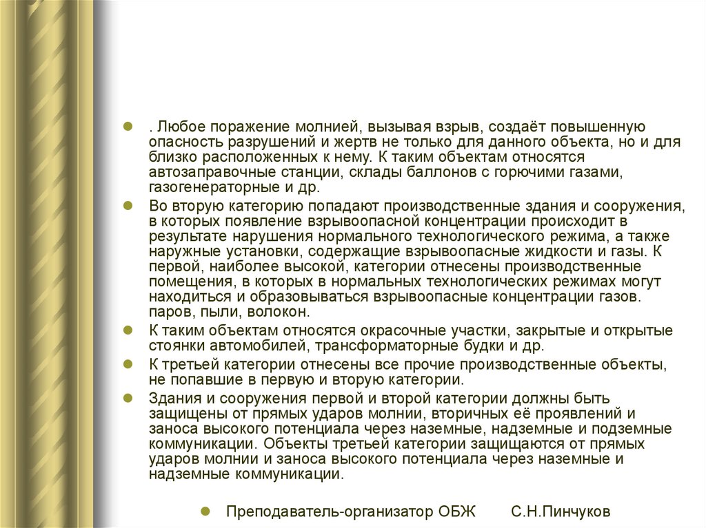 . Любое поражение молнией, вызывая взрыв, создаёт повышеннуюопасность разрушений и жертв не только для данного объекта, но и для