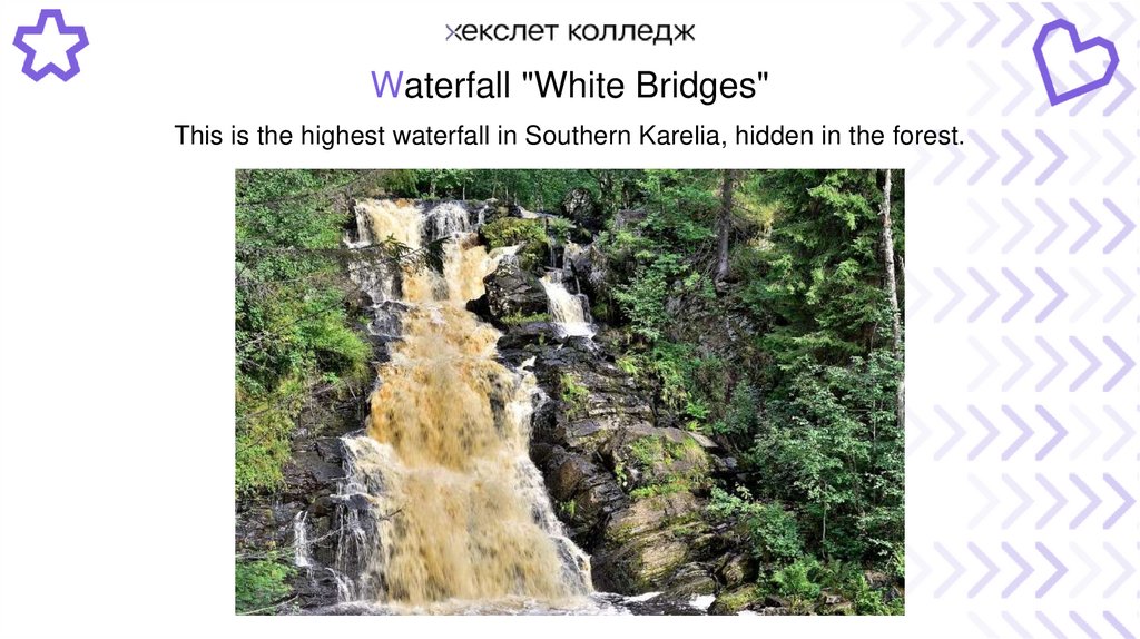 Waterfall "White Bridges"This is the highest waterfall in Southern Karelia, hidden in the forest.
