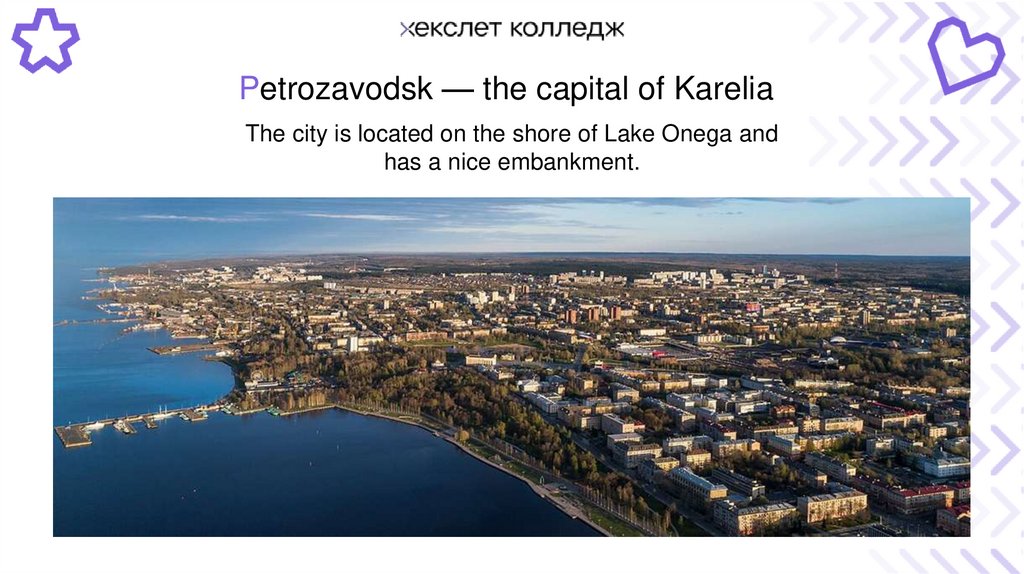 Petrozavodsk — the capital of KareliaThe city is located on the shore of Lake Onega and