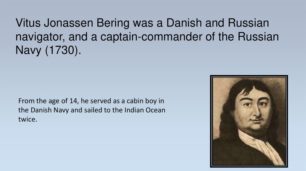 Vitus Jonassen Bering was a Danish and Russiannavigator, and a captain-commander of the Russian