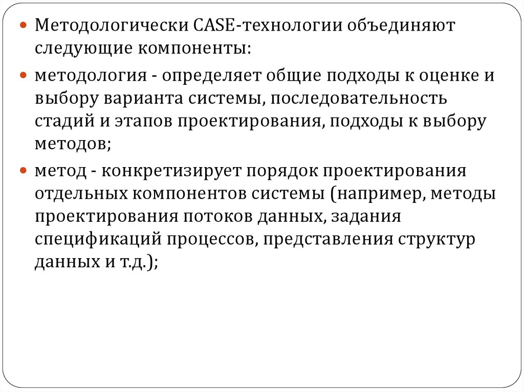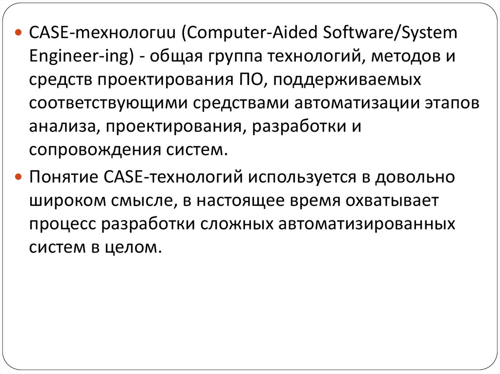 CASE-mexнологuu (Computer-Aided Software/SystemEngineer-ing) - общая группа технологий, методов и