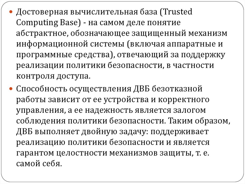 Достоверная вычислительная база (TrustedComputing Base) - на самом деле понятие