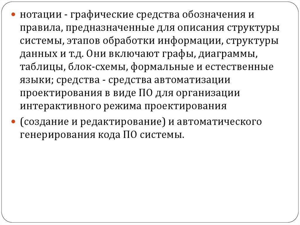 нотации - графические средства обозначения иправила, предназначенные для описания структуры