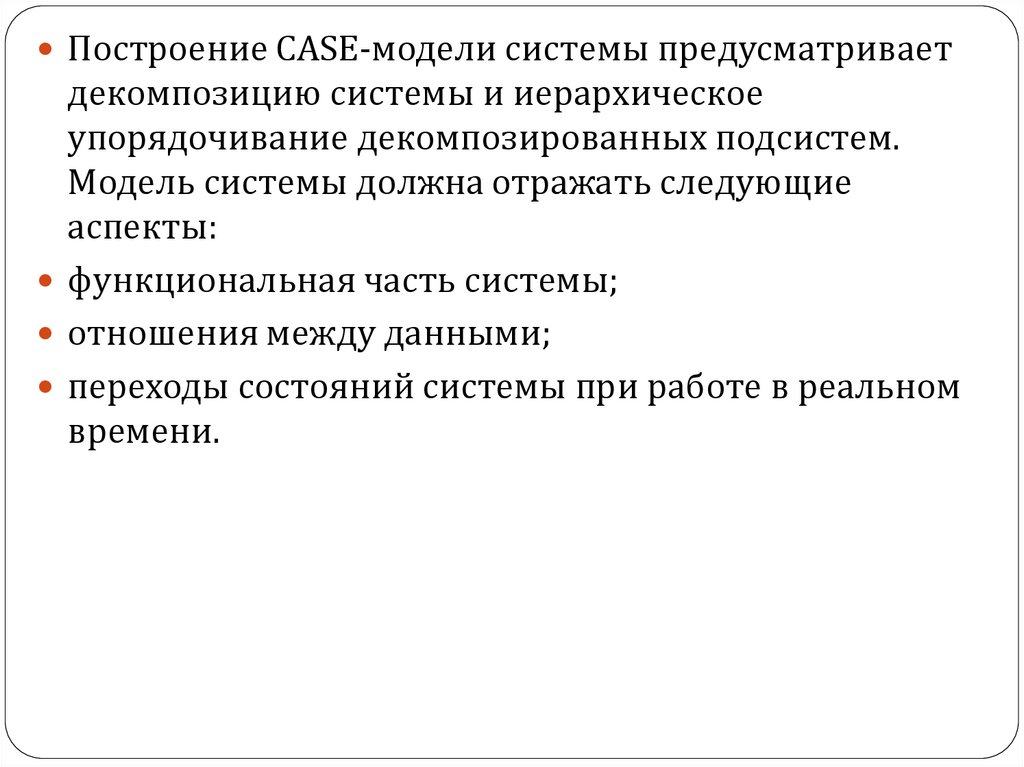 Построение CASE-модели системы предусматриваетдекомпозицию системы и иерархическое
