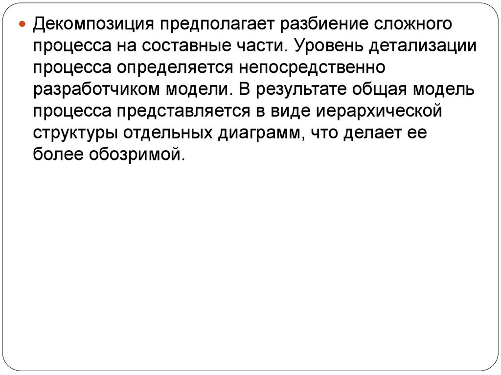 Декомпозиция предполагает разбиение сложногопроцесса на составные части. Уровень детализации