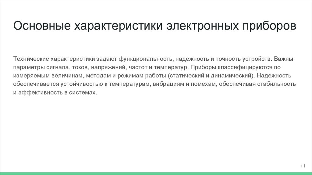 Основные характеристики электронных приборовТехнические характеристики задают функциональность, надежность и точность устройств. Важны