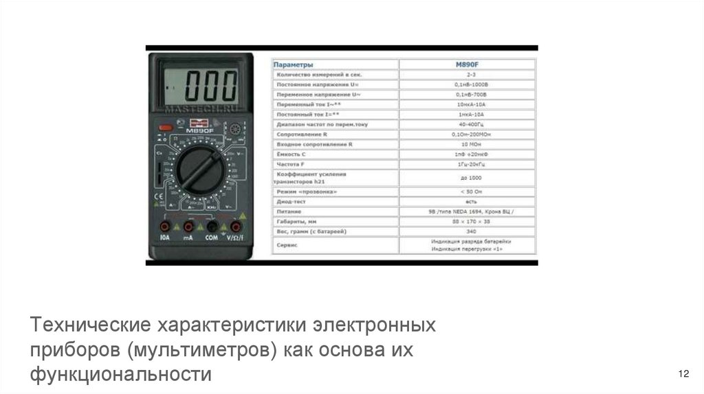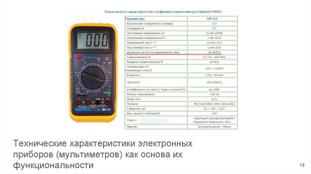 Технические характеристики электронныхприборов (мультиметров) как основа их