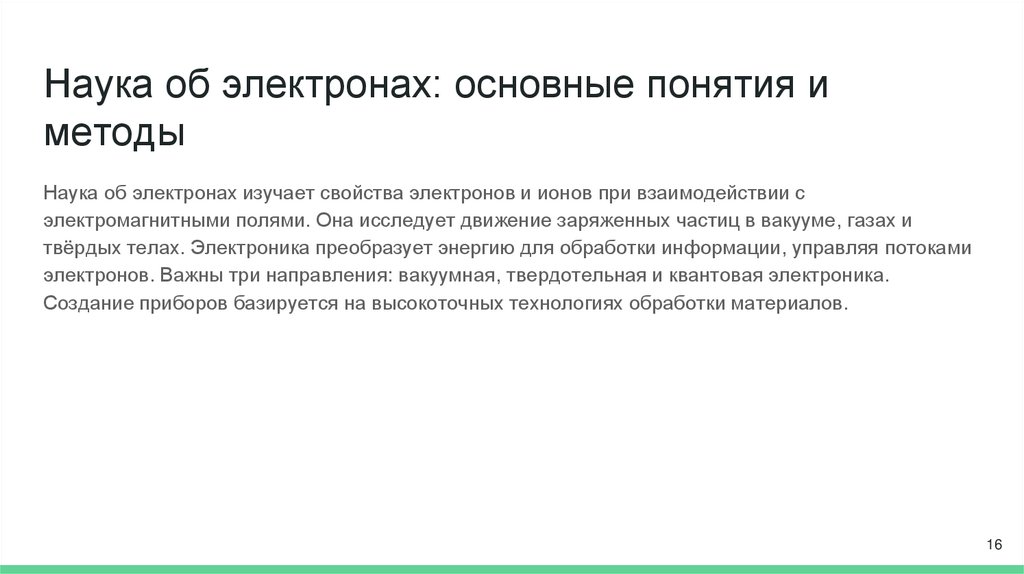 электронов. Важны три направления: вакуумная, твердотельная и квантовая электроника.