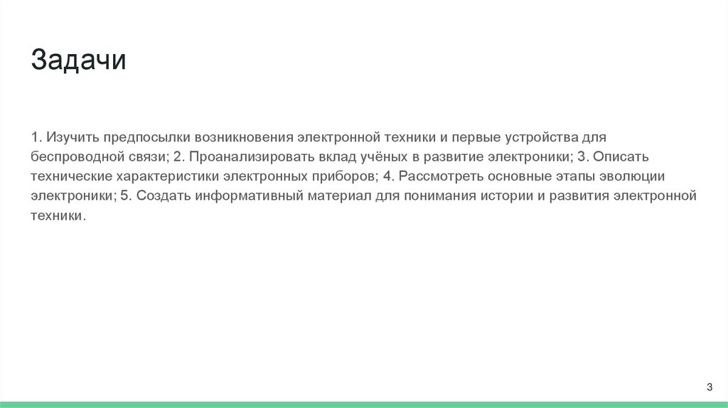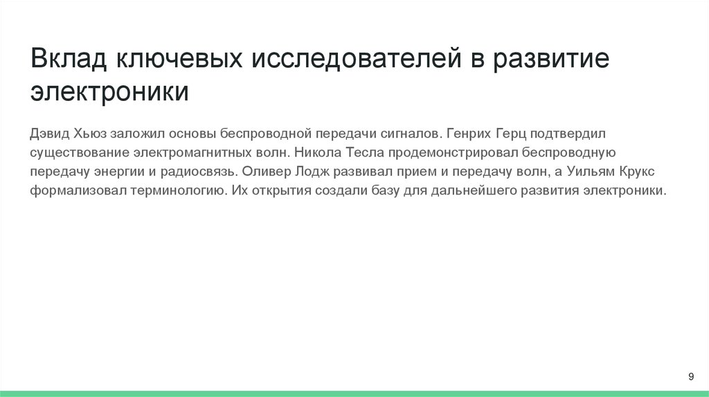 беспроводной связи; 2. Проанализировать вклад учёных в развитие электроники; 3. Описать
