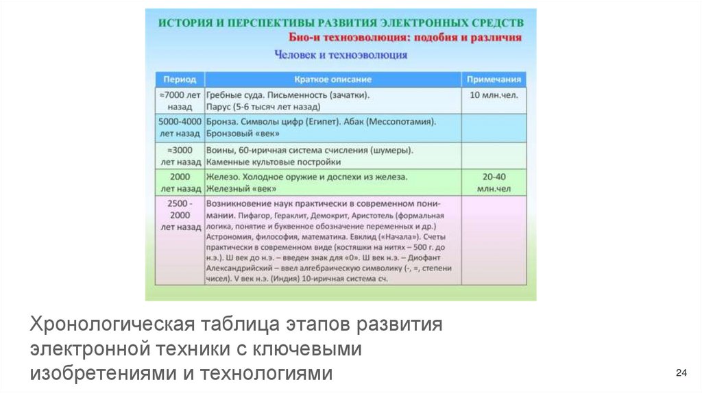 технические характеристики электронных приборов; 4. Рассмотреть основные этапы эволюции