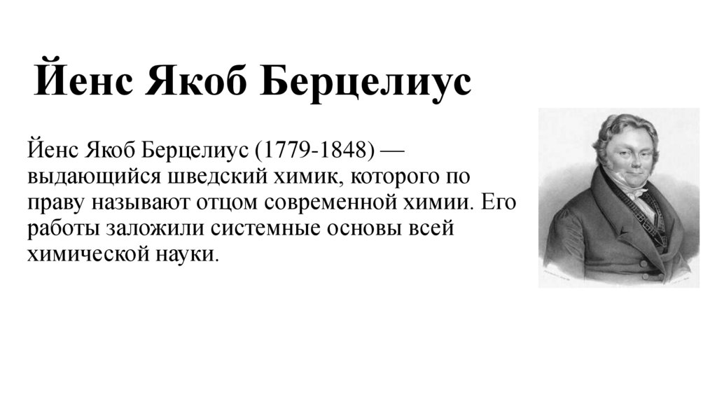 Йенс Якоб Берцелиус (1779-1848) —выдающийся шведский химик, которого по