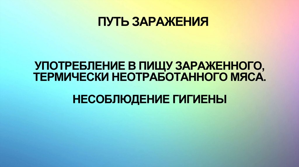 ПУТЬ ЗАРАЖЕНИЯУПОТРЕБЛЕНИЕ В ПИЩУ ЗАРАЖЕННОГО,