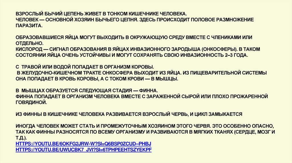 ВЗРОСЛЫЙ БЫЧИЙ ЦЕПЕНЬ ЖИВЕТ В ТОНКОМ КИШЕЧНИКЕ ЧЕЛОВЕКА.ЧЕЛОВЕК — ОСНОВНОЙ ХОЗЯИН БЫЧЬЕГО ЦЕПНЯ. ЗДЕСЬ ПРОИСХОДИТ ПОЛОВОЕ РАЗМНОЖЕНИЕ