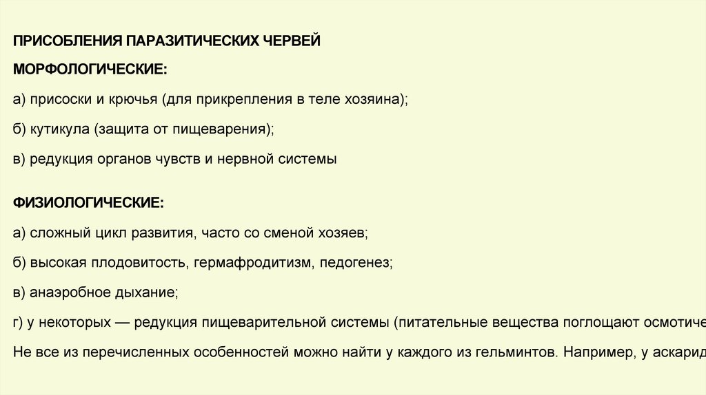 ПРИСОБЛЕНИЯ ПАРАЗИТИЧЕСКИХ ЧЕРВЕЙМОРФОЛОГИЧЕСКИЕ: