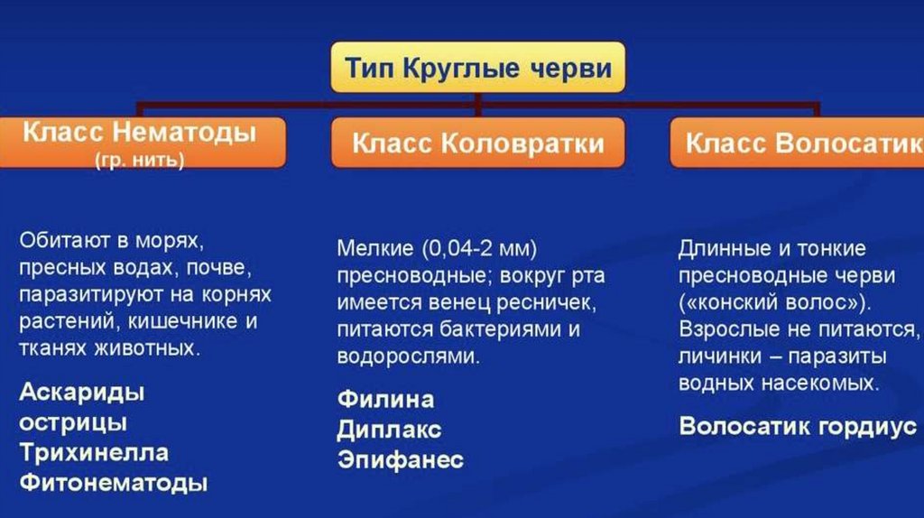 Не все из перечисленных особенностей можно найти у каждого из гельминтов. Например, у аскарид