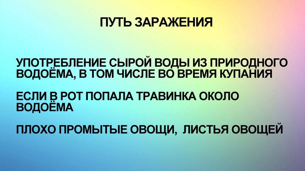 ПУТЬ ЗАРАЖЕНИЯУПОТРЕБЛЕНИЕ СЫРОЙ ВОДЫ ИЗ ПРИРОДНОГО