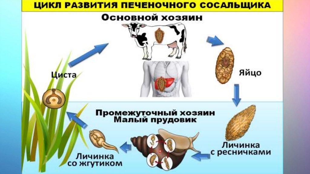 ЛИЧИНКА ДОЛЖНА ПОПАСТЬ В ОРГАНИЗМ МАЛОГО ПРУДОВИКА (УЛИТКА)-ПРОМЕЖУТОЧНОГО ХОЗЯИНА