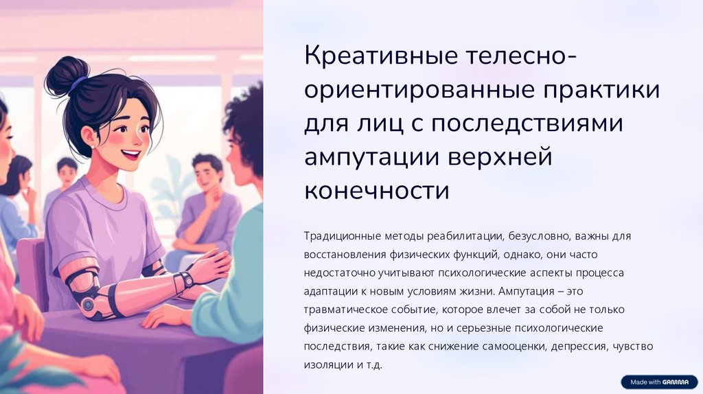 творческого развития и самовыражения людей с последствиями ампутации конечности, используя движение, музыку,