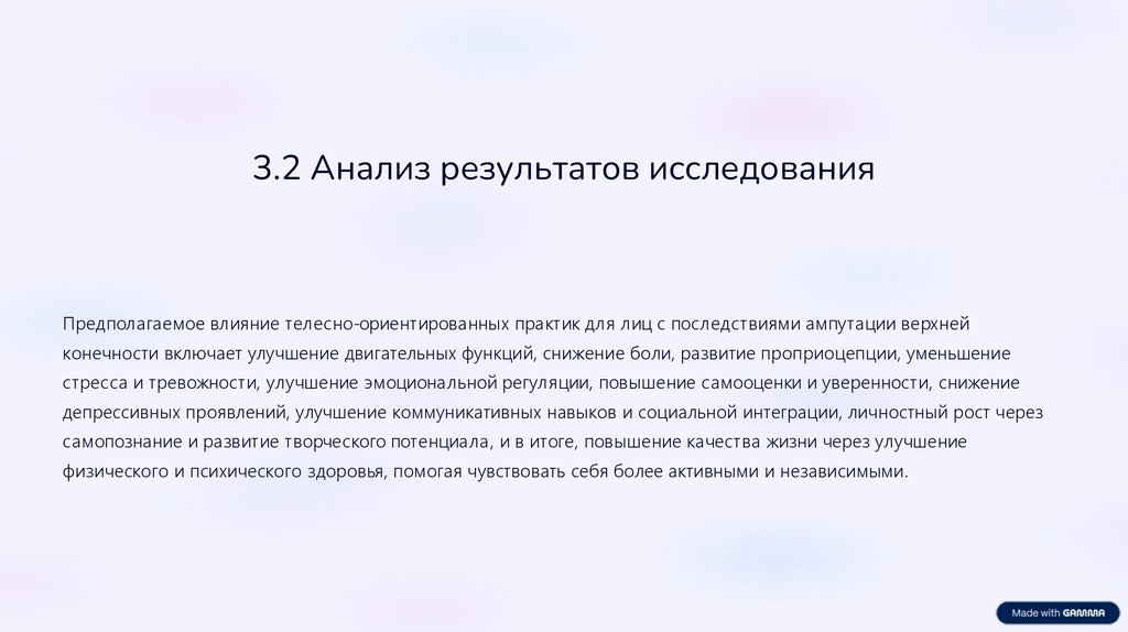 3.2 Анализ результатов исследованияПредполагаемое влияние телесно-ориентированных практик для лиц с последствиями ампутации верхней