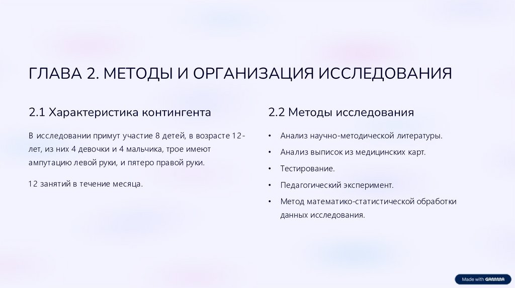 ГЛАВА 2. МЕТОДЫ И ОРГАНИЗАЦИЯ ИССЛЕДОВАНИЯ2.1 Характеристика контингента