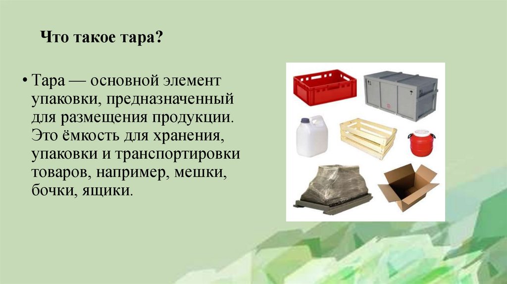 Что такое тара?• Тара — основной элемент