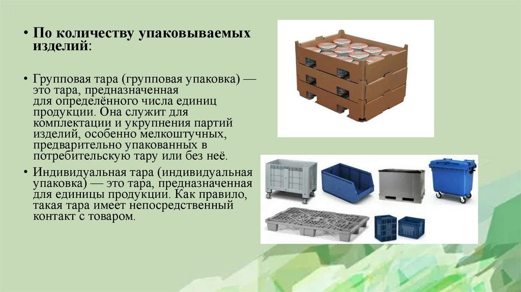 • Индивидуальная тара (индивидуальная
