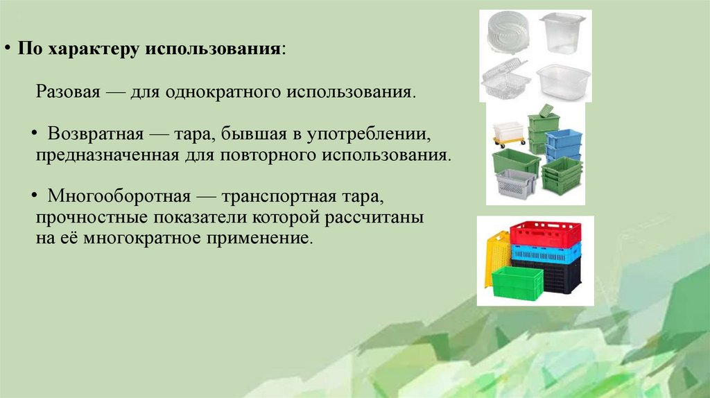• Возвратная — тара, бывшая в употреблении,