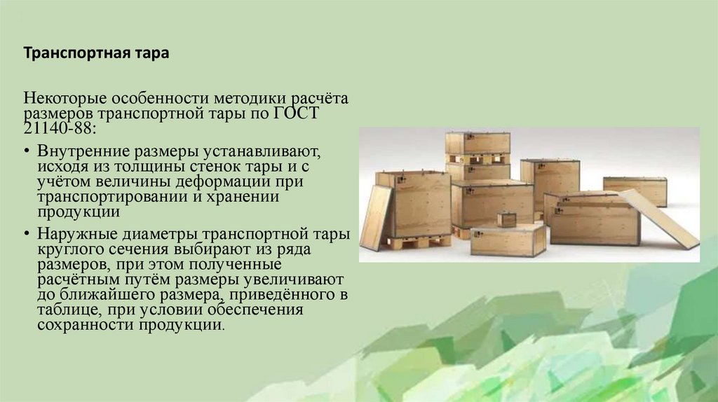 Транспортная тараНекоторые особенности методики расчёта