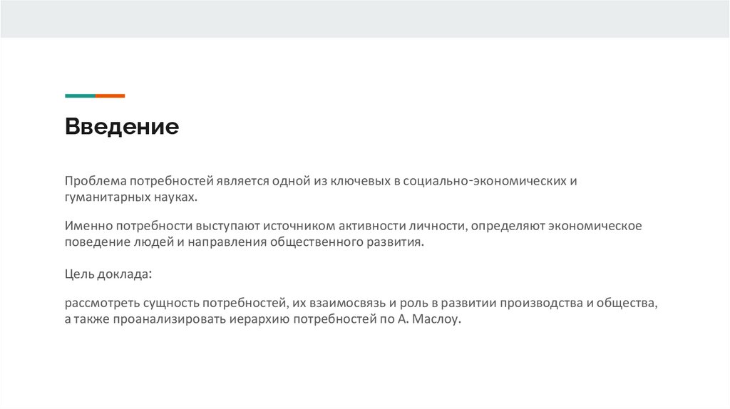 ВведениеПроблема потребностей является одной из ключевых в социально-экономических и