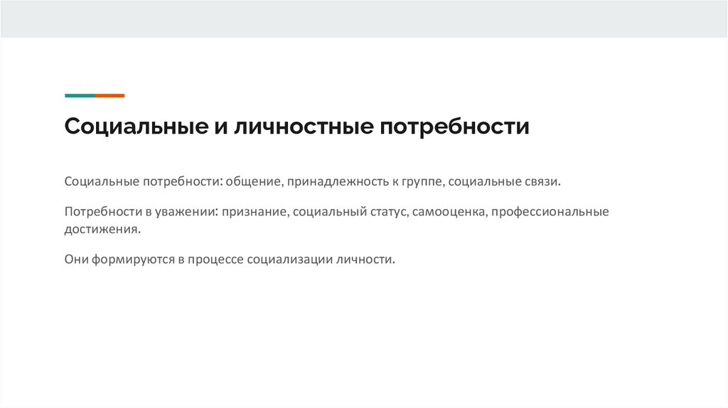 Социальные и личностные потребностиСоциальные потребности: общение, принадлежность к группе, социальные связи.